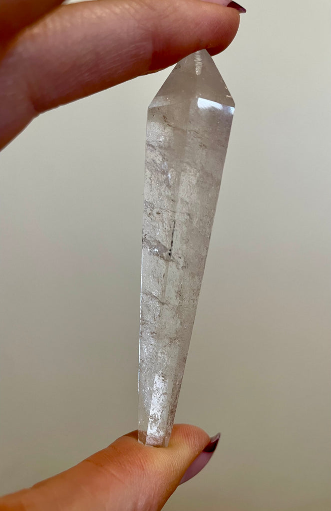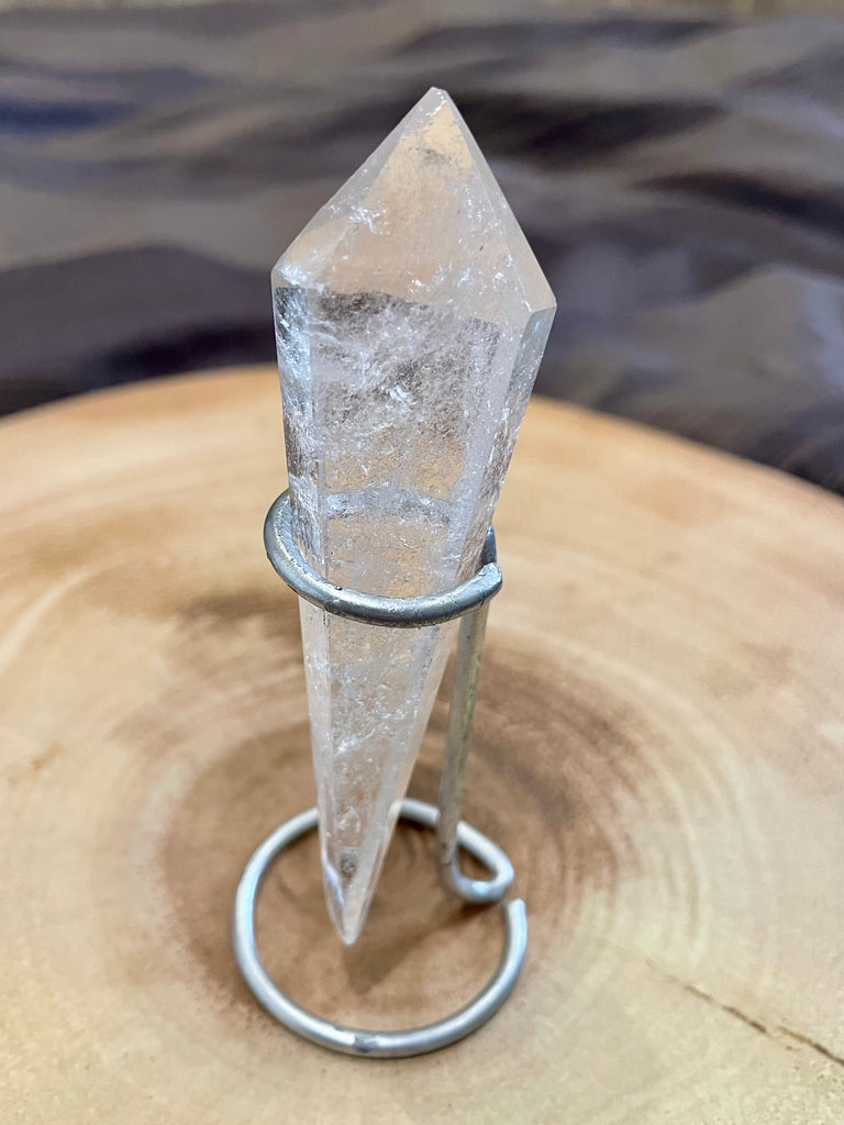 This Clear Quartz Wand and Stand is perfect for those seeking clarity and healing. The master healer crystal contains great clarity and inclusions, providing potential benefits in promoting overall wellness. Made with steel stand for easy display.