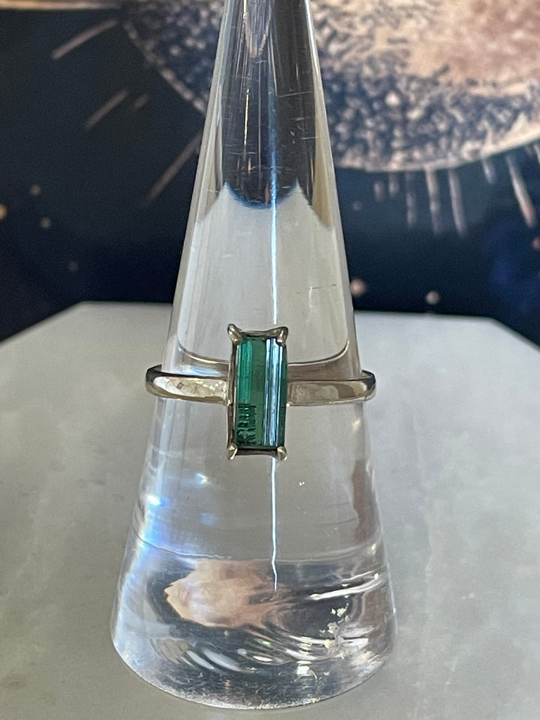 This Green Tourmaline Sterling Silver Ring is not only a beautiful accessory but also harnesses the healing properties of green tourmaline. With its high percentage of tourmaline, this ring can promote a sense of calm, balance, and rejuvenation, making it a perfect piece for everyday wear.
