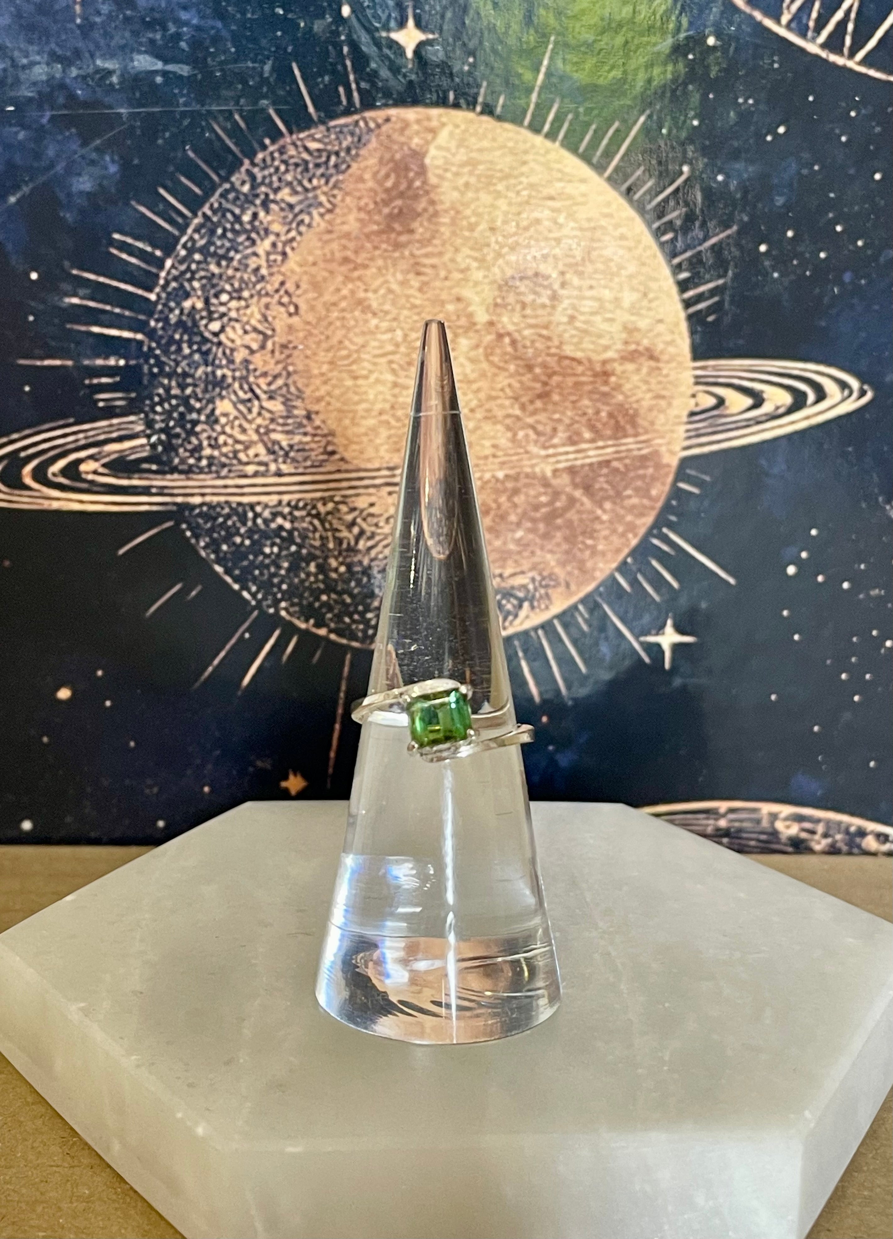 This Green Tourmaline Sterling Silver Ring is not only a beautiful accessory but also harnesses the healing properties of green tourmaline. With its high percentage of tourmaline, this ring can promote a sense of calm, balance, and rejuvenation, making it a perfect piece for everyday wear.